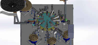 industrial 3D model Tablet battery assembly device, battery suction vacuum cup, CCD adjusts position, electric turntable adjusts position and moves to the bottom of press for pressing The model has clear structure and design of each parts are reasonable and practical. SolidWorks