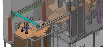 industrial 3D model Automatic box folding machine 1. Small device size 2. need 300 and the number of devices that can be connected in series is 2 3. Stable device operation 4. After tearing the liner, the pressure of the device mechanism is maintained, the force is moderate, and the pressure is maintained for 15~20 seconds. 5. The device has a robust design and may have its automatic dust removal function. Due to the long stroke of the device module, there are fewer equipment lines to avoid broken lines.