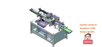 This is industrial 3D model Battery shrink wrap machine. Cylindrical Lithium Battery Case Labeling Machine 3D Drawing Model 1 of Battery Wrapping Machine Drawing