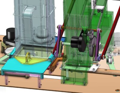 This is industrial 3D model Cigarette rolling machine Drawing of a small-sized fully automatic cigarette rolling mechanism. This device is a cigarette cutting machine, divided into 3 mechanisms: tube pushing mechanism, cut cigarette feeding and pressing mechanism and cut cigarette feeding mechanism bottom. First, you put the entire empty pipe box into the green box, put the cut cigarettes into the glass box, turn on the start button, the cigarettes will automatically fall one by one and push them to the loaded cigarette loading area. cut and clamp the tubes and then cut the cigarette. The motor of the feeding and pressing mechanism starts to rotate, driving the crank connecting rod mechanism to push the cut cigarette diagonally down and then press down on the cigarette release port, then cut cigarette below The cigarette feeding mechanism cuts off the excess tobacco and puts it into the pipe, pushes it back and forth once, and pushes it out to complete the cigarette. This mechanism adopts motor control, flexible use, ingenious structure, etc. Industrial use: Equipment Design software: SolidWorks Version/Edit:SW2013 file format:step(stp) Sldprt Sldasm