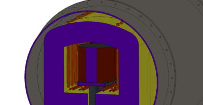 industrial 3D model Continuous high temperature purification furnace is divided into input part, treatment part and output part, the treatment part is a vacuum furnace filled with argon and hydrogen, the natural conveying part is divided into 2.2 meters so the inlet part and the outlet is also closed cabin.