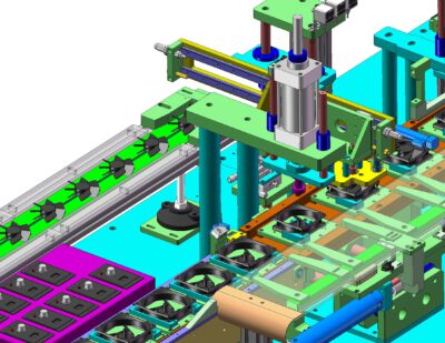 This is industrial 3D model Fan assembly machine Linear cooling fan assembly machine, material supply vibration plate Industrial use: Equipment Design software: SolidWorks Version/edit:2015 file format:Sldprt Sldasm