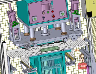 This is industrial 3D model FPC bending equipment This equipment is a molding equipment developed for the FPC assembly department of the mobile phone vibration motor production line. It mainly bends and molds FPC through the gear rack. The bending angle can be adjusted by controlling the cylinder stroke, and can also be controlled by controlling the temperature of the heating device on the device.