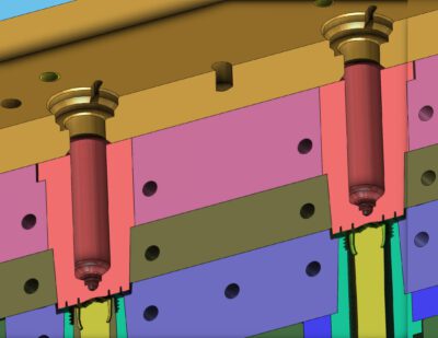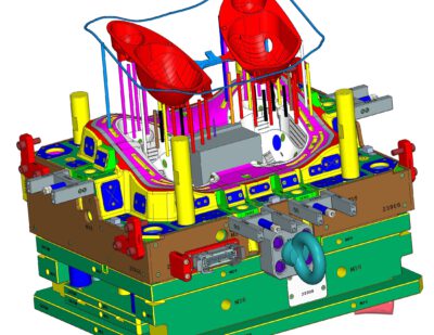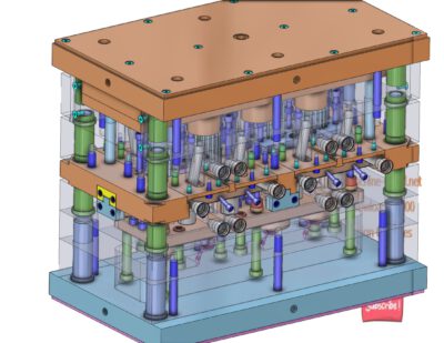 This is industrial 3D model Goggle frame injection mold A set of mold designs for eyeglass frames. Standard mold base and mold core design can increase mold life, reduce processing costs and raw material costs. Inside there are guide post, reset bar, parallel block, precision block, lifting ring, extrusion block, safety lock, limit switch, anti-french cover, thimble, spacer, screws and junction box. Beautiful appearance, reasonable mold locking and simple structure.