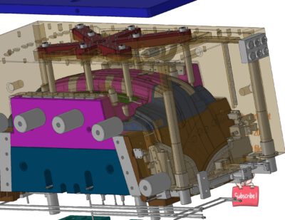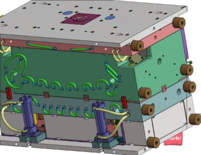 This is industrial 3D model Goggle frame injection mold A set of mold designs for eyeglass frames. Standard mold base and mold core design can increase mold life, reduce processing costs and raw material costs. Inside there are guide post, reset bar, parallel block, precision block, lifting ring, extrusion block, safety lock, limit switch, anti-french cover, thimble, spacer, screws and junction box. Beautiful appearance, reasonable mold locking and simple structure.