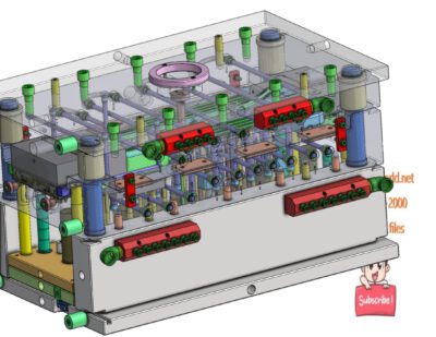 This is industrial 3D model Goggle frame injection mold A set of mold designs for eyeglass frames. Standard mold base and mold core design can increase mold life, reduce processing costs and raw material costs. Inside there are guide post, reset bar, parallel block, precision block, lifting ring, extrusion block, safety lock, limit switch, anti-french cover, thimble, spacer, screws and junction box. Beautiful appearance, reasonable mold locking and simple structure.