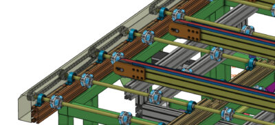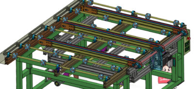 This industrial 3D model conveying line is a reversing jack conveying, which achieves the purpose of jacking through the cylinder + connecting rod, and the conveying speed reaches different speeds through the speed control motor. The conveyor line is conveyed by synchronous wheels and belts.