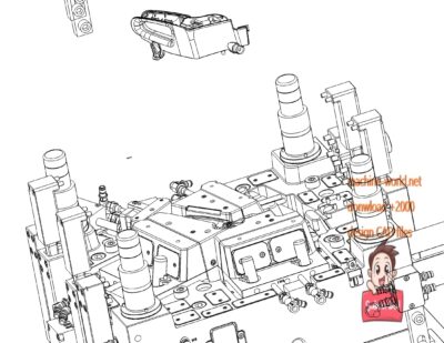 This is industrial 3D model MFA2 handle frame injection mold MFA2 handle skeleton with lower left and right parts mold diagram