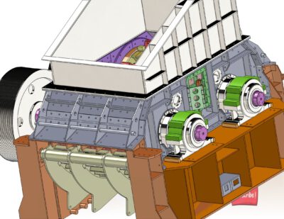 This is industrial 3D model Paddle dryer Agitator dryer is a low-speed stirred dryer with a paddle inside the device, so that the wet material can fully contact the heat carrier and hot surface under the agitation of the paddle, thereby achieving the goal drying destination. The structural form is generally horizontal, dual axis or four axis. Paddle dryers are divided into hot air type and heat conduction type. Hot air type uses a heat carrier (such as hot air) to contact and dry the material to be dried. In the thermal conduction type, the heat carrier does not come into direct contact with the material to be dried, but the hot surface is in contact with the material. The advantages of the conductive type are that the material is not easily polluted, the amount of exhaust gas is small, the thermal efficiency is high, and the volume is relatively small, which is beneficial to saving energy and preventing air pollution. Working principle: Agitator dryers consist of two to four interlocking impeller shafts, a shrouded W-shaped housing, a machine base, and a transmission unit. The entire material drying process is carried out in a closed state and organic gases are volatile. and Odor gas is sent to the exhaust gas treatment equipment in a closed environment to avoid environmental pollution. The dryer uses steam, hot water or thermal oil as the heating medium, and the shaft end is equipped with a rotary joint to introduce and export the heat medium. The heating medium is divided into two paths, respectively entering the shell of the dryer housing and the inner cavity of the blade shaft. The body and blade shaft are heated at the same time, and the material is heated and dried by conductive heating. The dry materials are fed into the dryer’s feed port quantitatively and continuously by a screw feeder. The materials enter the back of the dryer and are rotated and stirred by the rotation of the continuously updated and exposed blades. The dryer body and blade, at the same time, are completely heated, causing the surface moisture contained in the material to evaporate. At the same time, the material forms a spiral trajectory with the rotation of the blade axis and is transported toward the discharge port. The material continues to be agitated during transport, so that the water that seeps out of the slurry continues to evaporate. Finally, the uniformly dried and qualified products are discharged from the discharge port. Device features: a. The device has a compact structure and the device occupies a small area. It can be seen from the structure of the device that the heat needed for drying is mainly provided by the walls of the hollow blades arranged on the hollow shaft, while the heat transferred from the walls of the jacket accounts for only a small part. Therefore, the heat transfer surface per unit volume of the equipment is large, which can save equipment floor space and reduce infrastructure investment. b. High heat utilization rate. The sludge dryer uses conductive heating for heating. All heat transfer surfaces are covered with material, reducing heat loss; There is no hot air to take away the heat and the heat utilization rate can reach more than 90%. c. The wedge-shaped blades are self-cleaning, which can improve the heat transfer efficiency of the blade. The dispersion force generated by the combined motion of the inclined surface of the rotating blade and the particles or powder layer automatically removes the sludge on the heating inclined surface, and the blade maintains an effective heat transfer function. In addition, because the biaxial blades rotate in opposite directions and respectively perform segmental compression (when the biaxial blade surfaces are closest to each other) and expansion (when the biaxial blade surfaces are furthest apart) , the mixing function ensures uniform heat transfer and improves heat transfer effect.