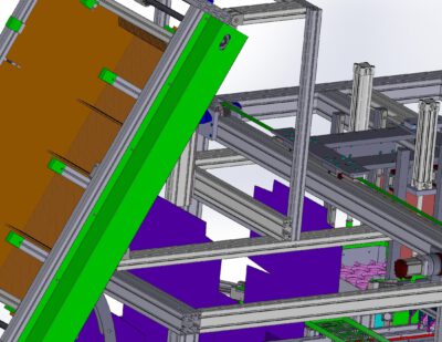 This is industrial 3D model palletizer Palletizers and palletizers are used in pallet transport systems. They are used in conjunction with different conveyors to recycle empty pallets on the line or distribute empty pallets to the conveyor chain. Coder machine: also known as pallet gathering machine, is responsible for sending each empty pallet from the line to the coding machine via the conveyor belt, and automatically stacks the pallets into a stack (usually 6-10 stacks of pallets on top of each other). archive or redistribute. Removing pallets: The working mode is the opposite of that of the palletizer. It separates and sends each stacked pallet as required.