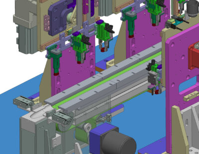 This is industrial 3D model picks up products mechanism Coordinate robots arranged on both sides will pick up products delivered by the assembly line to complete the sorting operation.