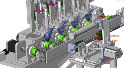 This is industrial 3D model Pump body screw tightener, mainly aimed at the screw tightening station of the oil pump housing, has high automation, realizes mass production, is mainly controlled by PLC and automatic control panel, has a high degree of automation.