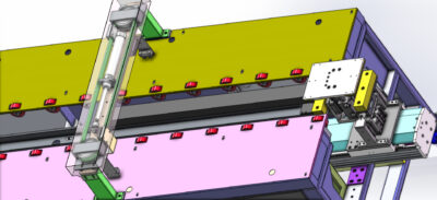 This is industrial 3D model of sheet metal centering traction mechanism, the traction mechanism uses servo motor + module, the center mechanism uses cylinder + synchronous belt, clamping mechanism uses lifting cylinder + magnet power, the gap specifications are adjustable, the structure is simple and it is widely used.In the furniture and sheet metal manufacturing industry