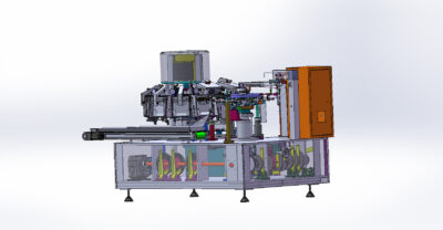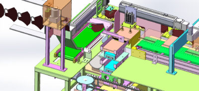 industrial 3D model of 300 standard pillow packing machine (mask packing machine) Packing machine Pillow is suitable for packing food, pharmaceutical, daily necessities, disposable products, hardware products, plastic products, toys, stationery, industrial supplies, industrial parts, automotive parts and so on, this design is specially designed for mask packing, the mask is conveyed by synchronous belt mound into the main machine, the packing film is packed from bottom to top and the packing process package is completed through middle seal, blade and other stations. The machine includes 2 servo motors and frequency converter motor As the power supply, this is a common configuration in the industry,
