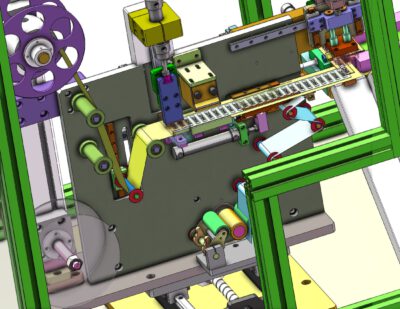 This is industrial 3D model toy labeling machine The principle of the device: the product runs quickly to the conveyor line, stops after the product is placed in the correct position and labeled, the label includes a label fixing part and a label sending wheel. Industrial use: Equipment Design software: SolidWorks Version/edit:2018 file format:Sldprt Sldasm