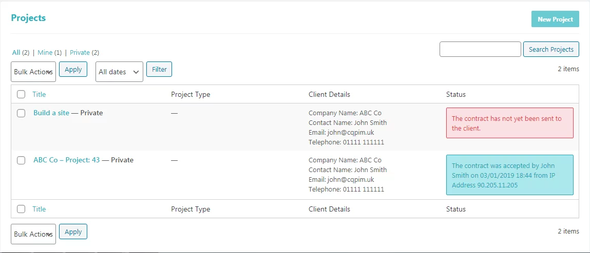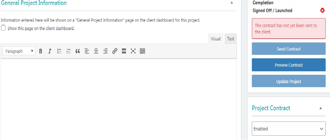 The contract will be sent to the client for review before approval, before moving ahead with their collaboration. If approved, the client can sign the contract through the dashboard.